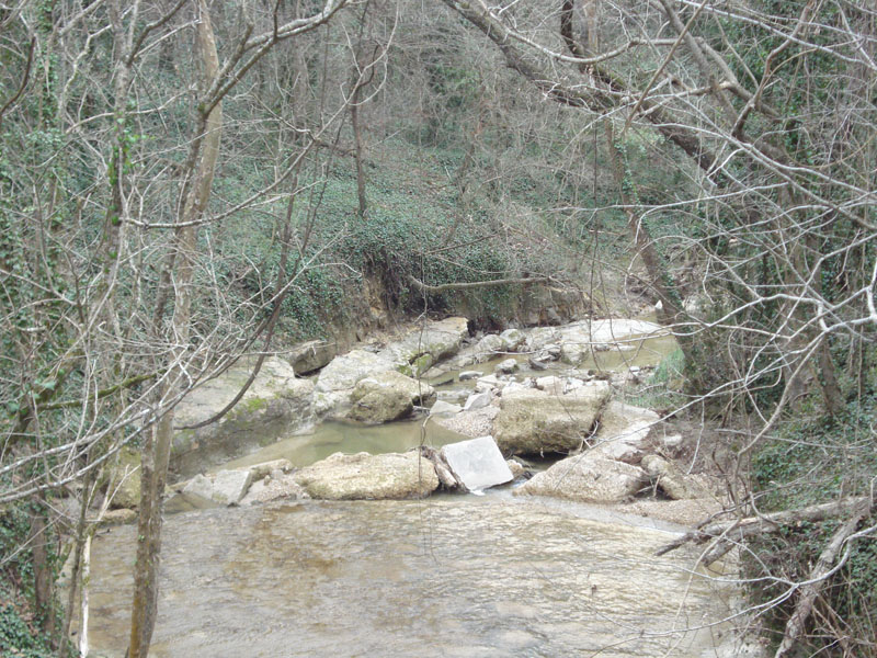 Description: Mint Spring Branch descends from Loess Bluffs of Vicksburg to the Mississippi River crossing layers of bedrock comprising the lower levels of the river bluff. One week after a series of hard rains. |