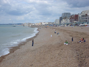 Description: Gravel beach at low tide. Tidal range is approximately 10 feet along the English Channel on the south coast of England. |