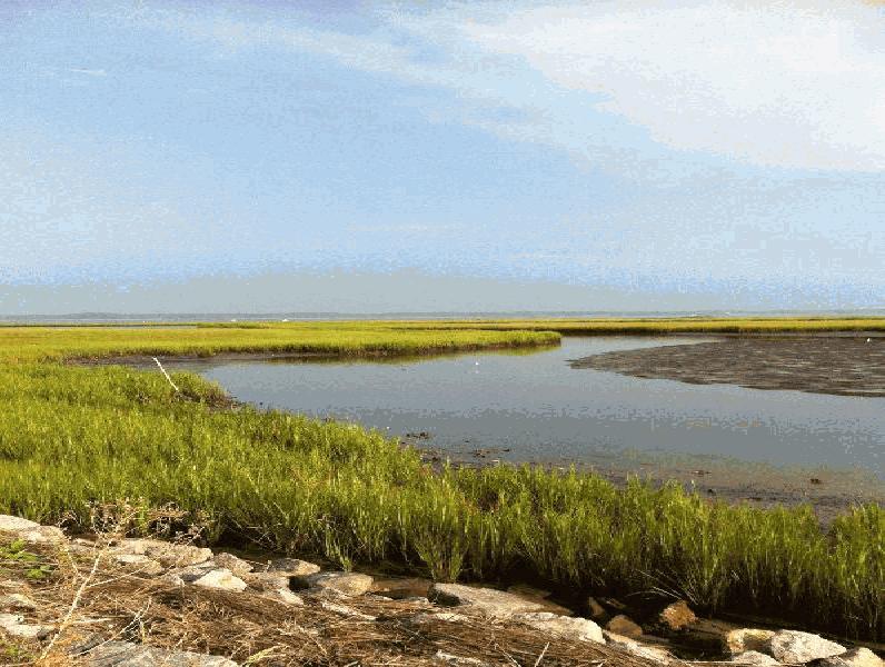 Description: Estuarine intertidal herbaceous emergent salt marsh. The salt marsh is considered persistent from year-to-year and is regularly flooded by the tide. Water is present in adjacent channel. |
