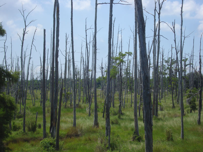 Description: Marsh is fresher (less salty than previous image of 7/30/2011), less Spartina patens. Some younger cypress coming back and scrub shrub as area is slightly drier. |