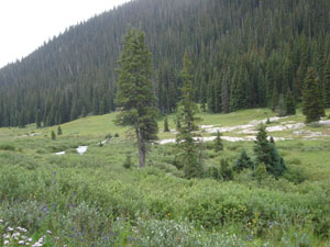 Description: At over 10,000 feet in altitude Schofield Park is the headwaters of the South Fork of the Crystal River. The stream is fed by snow melt and summer rainfall. The area adjacent to the stream is saturated and covered with thick Wetland Scrub-shrub. |