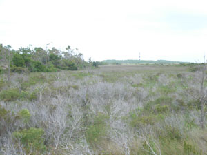 Description: Salt Marsh of Juncus romarianus that occupies an old swale between sand dune ridges on the Cape Lookout spit. The swale is now tidally connected to the estuary. |
