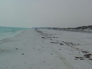Description: Marine Gulf of Mexico shoreline. Intertidal zone beach washed by daily tides. Regular daily astronomical tide washes to debris line along the beach. |