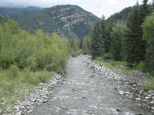 Description: Upper Perennial Riverine stream with permanent flow covering a portion of the Unconsolidated Bottom of cobble-gravel. |