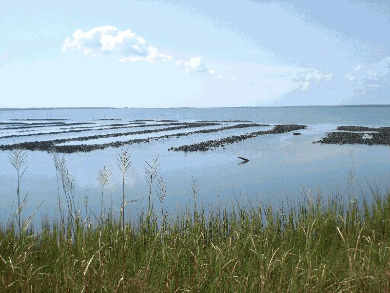 Description: Oyster beds in Shelly Bay. |