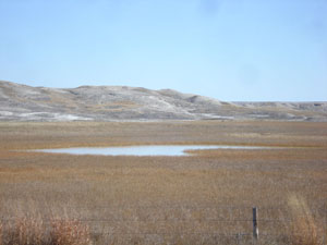 Description: Fresh Marsh and Open Water ponds within the Badlands as isolated wetlands. Recent rain, four days before picture. |