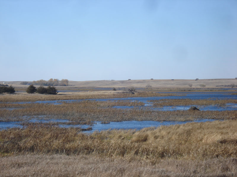 Description: Large Prairie Pothole isolated wetland of cattail fresh marsh and open water. |