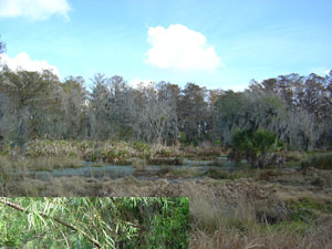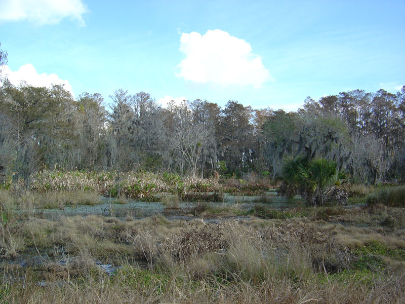 Description: Large sinkhole depression occupied by Fresh Marsh and Open Water. A Forested Wetland of cypress surrounds the isolated wetland. |