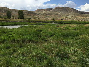 Description: Flats in Green River channel vegetated with fresh marsh of Timothy, Scirpus, and cattails. |