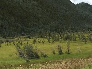 Description: Dwarf spruce trees in a wetland dominated by emergent fresh marsh between Comet Creek and the San Miguel River. |