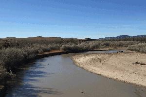 Description: Gravel and sand bar on inside of meander with a floodplain vegetation of Sand Bar Willow scrub-shrub, Russian Olive, and Cottowoods. |