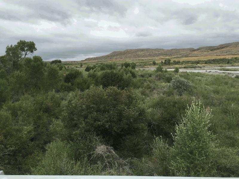 Description: Gravel bar in river channel covered with sand bar willow. Taller cottonwood trees are growing along channel bank. |