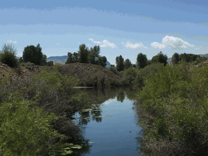 Description: Ponds and wetlands resulting from hydraulic dredge mining for gold in creek sediments. Wetlands are dominated by open water, cattails, and Srcub-shrub willow. |