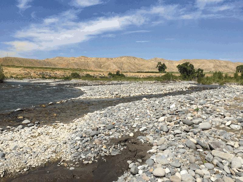 Description: Gravel/cobble bars in river channel. Some Sand Bar Willow growing on higher areas of bars. Braided channels through bars provide habitat for cutthroat trout. |