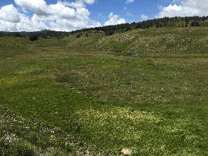 Description: Numerous old channel meander scars and oxbow lakes on the flat valley floor. Meanders scars are saturated, with standing water throughout the growing season. Emergent Fresh Marsh includes Scirpus app. and rushes. |