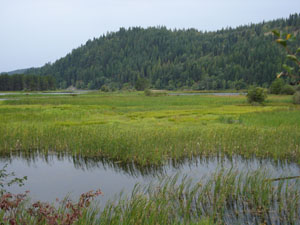 Description: Fresh Marsh, primarily Typha spp., with wetland Scrub-shrub and upland forested in the Clark Fork River delta in Lake Pend Oreille. As the delta continues to build, the wetland Scrub-shrub and forested areas become more prevalent. |