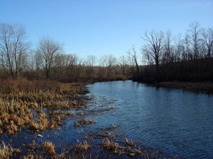 Description: Riverine channel permanently flooded joins Waneta Lake to Lamoka Lake. The water is slow moving. Emergent Marsh, Forested Wetlands, and Wetland Scrub-shrub occupy the saturated and seasonally flooded land adjacent to the channel. |