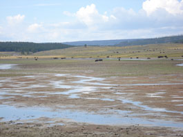 Description: Mud flat at the confluence of Elk Antler Creek and the Yellowstone River. Buffalo grazing has removed most of the emergent herbaceous wetland on the mudflat. |