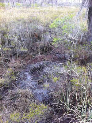 Description: Isolated pine flatwood bog. Palustrine emergent herbaceous bog wetland. Some wetland scrub-shrub present; less than 30% cover. Loblolly pine surrounding the saturated flat are on slightly higher ground. Bog is predominantly a peat soil on a sand base. |