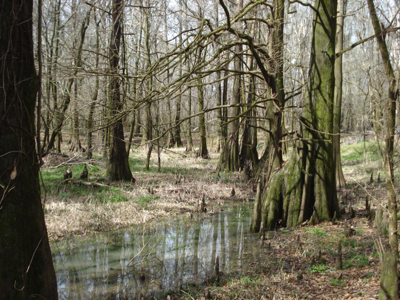 Description: Forested wetland of Bald Cypress. Small swamp area that has been hydrologically cut-off from the Big Cypress Creek. Low water in winter. |