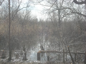 Description: Oxbow lake in Red River floodplain. Wetland scrub-shrub. Water level in oxbow lake is higher than normal by almost two feet. Beaver activity present on shoreline trees. Shrubs are predominantly willow. |