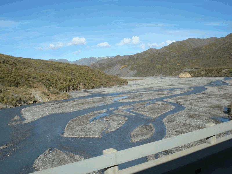 Description: Braided streambed of cobble/gravel with little water running in the large streambed. Streambed is flooded bank-to-bank with snowmelt in the spring and early summer. |